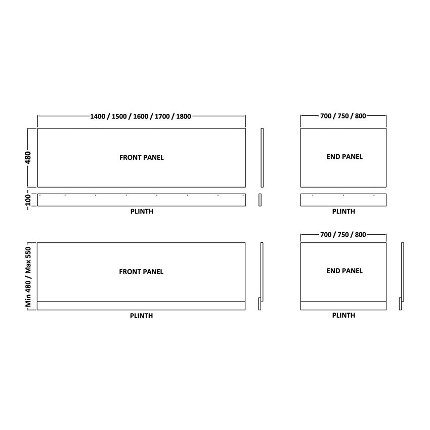 High Gloss White MDF Bath Front Panel & Plinth 1700mm BPR105