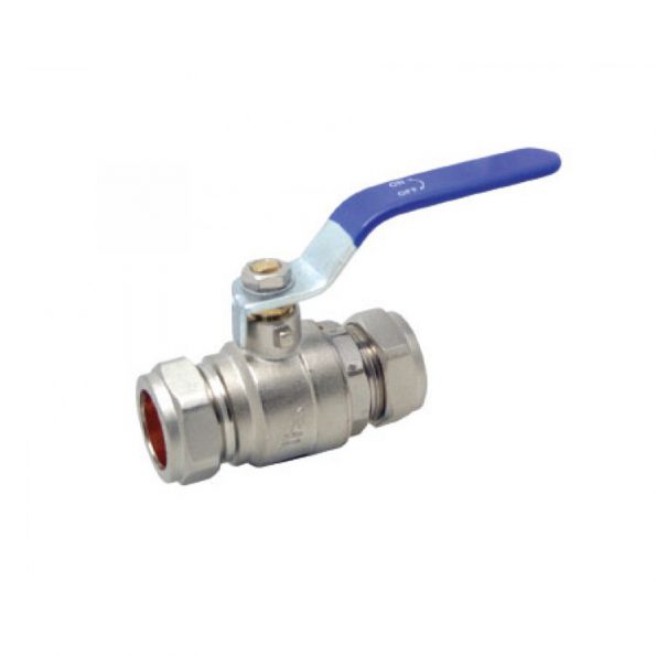 Full bore compression ball valve with brass valve body plated and blue handle. Application:                                         Water/Air Connection:                                        Compression Handle Colour:                                    Blue Material:                                               Brass Max Operating Temperature:             85°C Pressure Range:                                 16 bar at 30°C,... Read More
